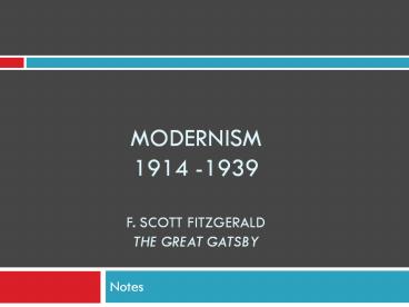 Title: Modernism 1914 -1939 F. Scott Fitzgerald The Great Gatsby