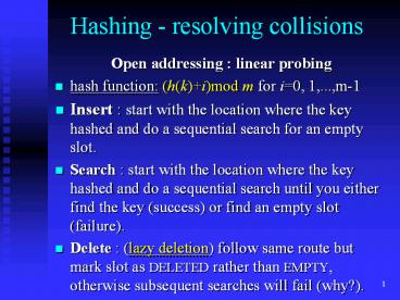 <Notice: Removed> Hashing - resolving collisions PowerPoint PPT Presentation