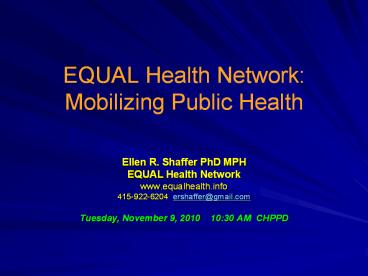 <Notice: Removed> EQUAL%20Health%20Network:%20Mobilizing%20Public%20Health PowerPoint PPT Presentation