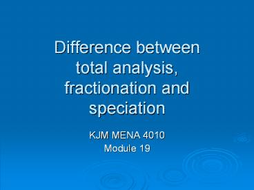 <Notice: Removed> Difference between total analysis, fractionation and speciation PowerPoint PPT Presentation
