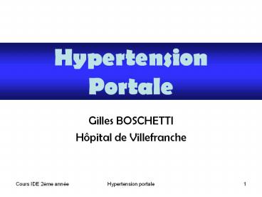 COMPLICATIONS DE L'HYPERTENSON PORTALE
