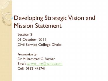 <Notice: Removed> Developing Strategic Vision and Mission Statement PowerPoint PPT Presentation