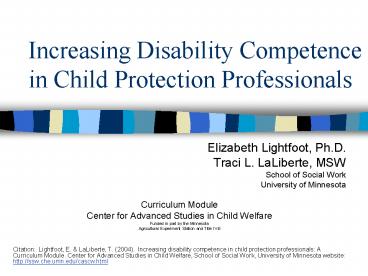 <Notice: Removed> Increasing Disability Competence in Child Protection Professionals PowerPoint PPT Presentation