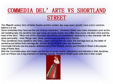 <Notice: Removed> COMMEDIA DEL PowerPoint PPT Presentation