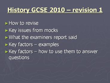 <Notice: Removed> History GCSE 2010 PowerPoint PPT Presentation