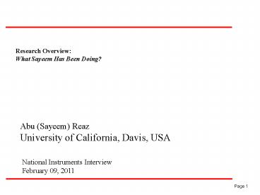 <Notice: Removed> Research Overview: PowerPoint PPT Presentation