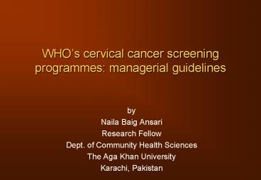 cervical cancer screening programme - To be familiar with the WHO recommended