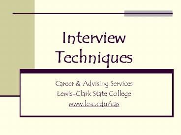 <Notice: Removed> Interview Techniques PowerPoint PPT Presentation