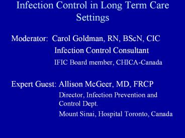 - Moderator Carol Goldman, RN, BScN, CIC