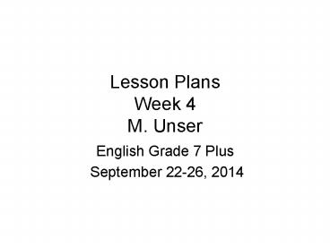 <Notice: Removed> Lesson Plans Week 4 M. Unser PowerPoint PPT Presentation