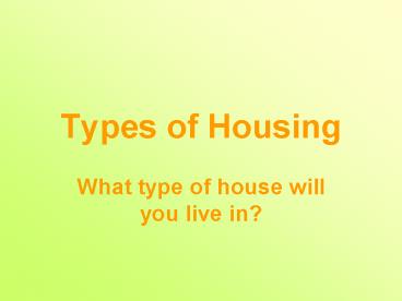 Types of Housing PowerPoint PPT Presentation