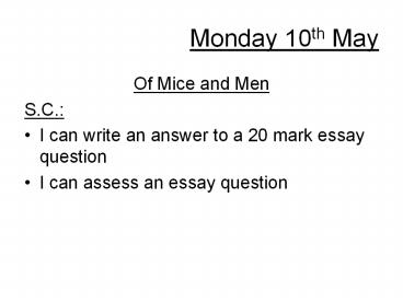 <Notice: Removed> Monday 10th May PowerPoint PPT Presentation