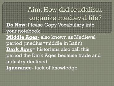 Aim: How did feudalism organize medieval life? PowerPoint PPT Presentation