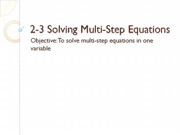 2-3 Solving Multi-Step Equations PowerPoint PPT Presentation