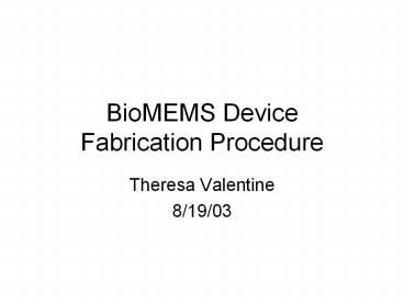 <Notice: Removed> BioMEMS Device Fabrication Procedure PowerPoint PPT Presentation