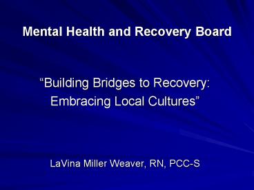 Mental Health and Recovery Board PowerPoint PPT Presentation