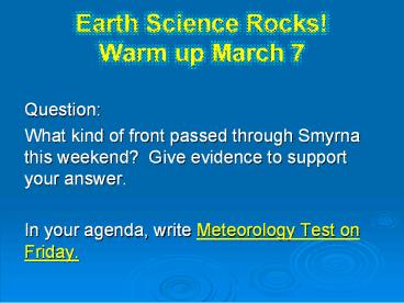 Earth Science Rocks! Warm up March 7 PowerPoint PPT Presentation