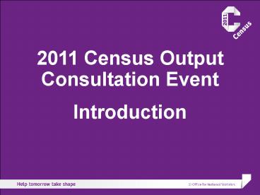 <Notice: Removed> 2011 Census Output Consultation Event PowerPoint PPT Presentation