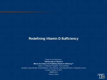 Redefining Vitamin D Sufficiency PowerPoint PPT Presentation