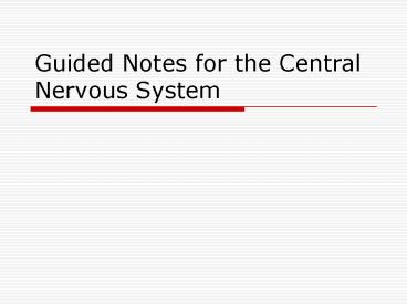 <Notice: Removed> Guided Notes for the Central Nervous System PowerPoint PPT Presentation