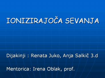 IONIZIRAJOCA SEVANJA PowerPoint PPT Presentation