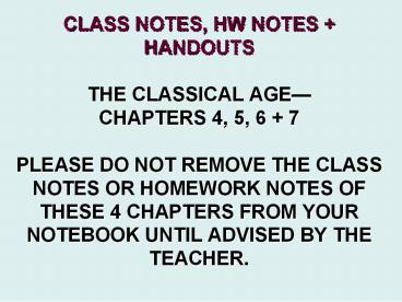 Title: CLASS NOTES, HW NOTES HANDOUTS THE CLASSICAL AGE