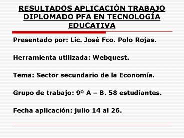<Notice: Removed> RESULTADOS APLICACI PowerPoint PPT Presentation