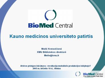 patogu autoriams publikuotis - KMU Interneto puslapis BioMedcentral portale su