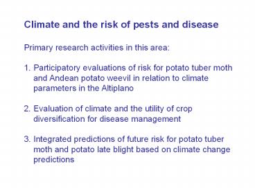 to Puno, Peru) Link pest risk with climate and