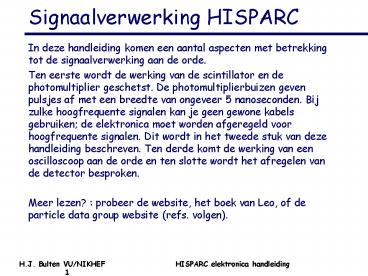 Title: H.J. Bulten VU/NIKHEF HISPARC elektronica handleiding 1