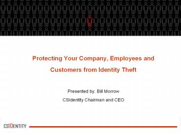 Title: Protecting Your Company, Employees and Customers from Identity Theft Presented by: Bill Morrow CSIdentity Chairman and CEO