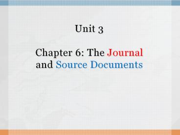 <Notice: Removed> Unit 3 Chapter 6: The Journal and Source Documents PowerPoint PPT Presentation