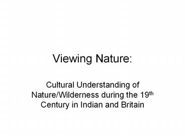 Viewing Nature: Cultural Understanding of Nature/Wilderness during the 19th Century in Indian and Britain – PowerPoint PPT presentation