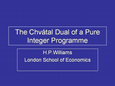 1The Chvátal Dual of a Pure Integer Programme