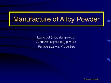 Manufacture of Alloy Powder PowerPoint PPT Presentation