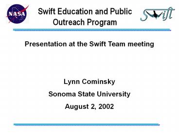 <Notice: Removed> Swift Education and Public Outreach Program PowerPoint PPT Presentation