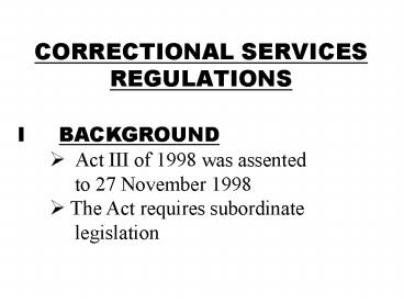 CORRECTIONAL SERVICES REGULATIONS PowerPoint PPT Presentation
