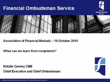 <Notice: Removed> Financial Ombudsman Service PowerPoint PPT Presentation