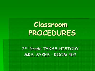 <Notice: Removed> Classroom PROCEDURES PowerPoint PPT Presentation