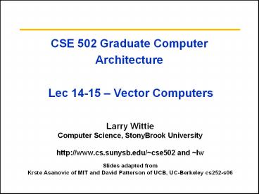 Title: CSE 502 Graduate Computer Architecture Lec 14-15