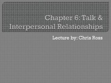 <Notice: Removed> Chapter 6: Talk PowerPoint PPT Presentation