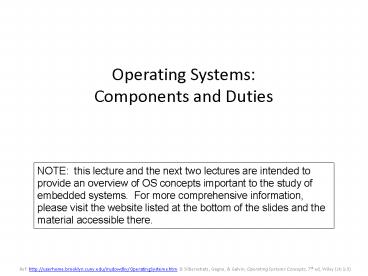 <Notice: Removed> Operating Systems: Components and Duties PowerPoint PPT Presentation
