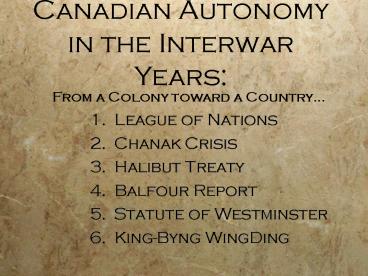 Canadian Autonomy in the Interwar Years: PowerPoint PPT Presentation