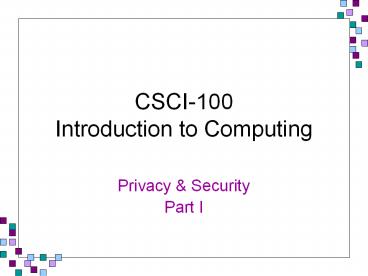 CSCI-100 Introduction to Computing PowerPoint PPT Presentation