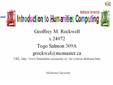 <Notice: Removed> Introduction to Humanities Computing PowerPoint PPT Presentation