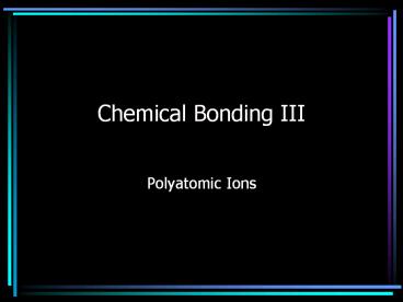 Chemical Bonding III PowerPoint PPT Presentation