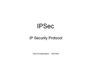voidaan suojata IPSecillä - IPSec voidaan konfiguroida sekä päätelaitteeseen