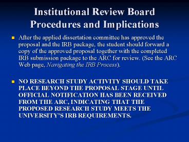 <Notice: Removed> Institutional Review Board Procedures and Implications PowerPoint PPT Presentation