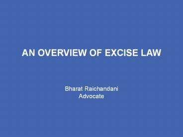 <Notice: Removed> AN OVERVIEW OF EXCISE LAW PowerPoint PPT Presentation