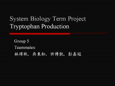 <Notice: Removed> System Biology Term Project Tryptophan Production PowerPoint PPT Presentation